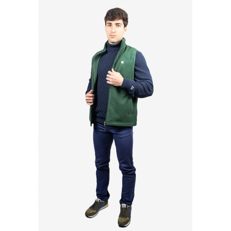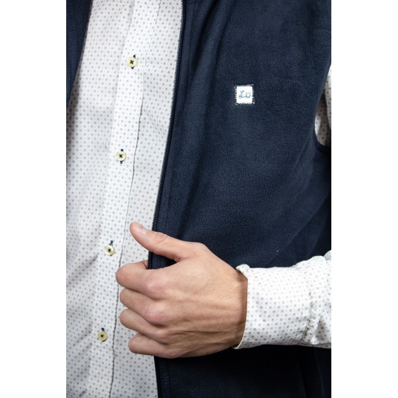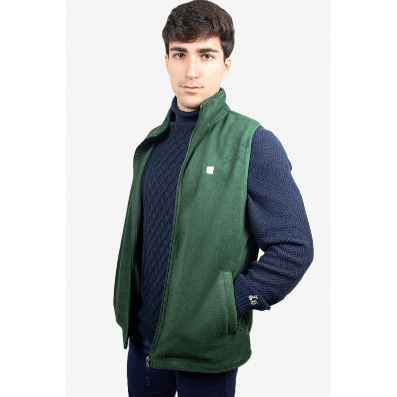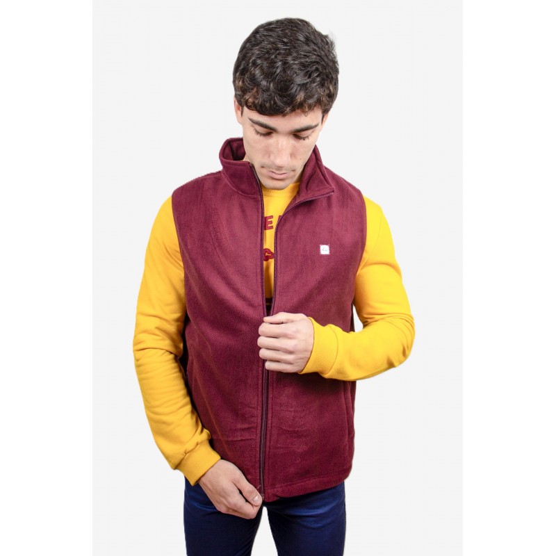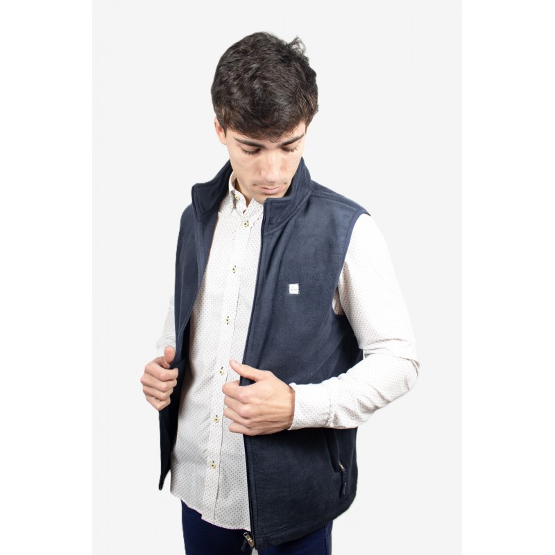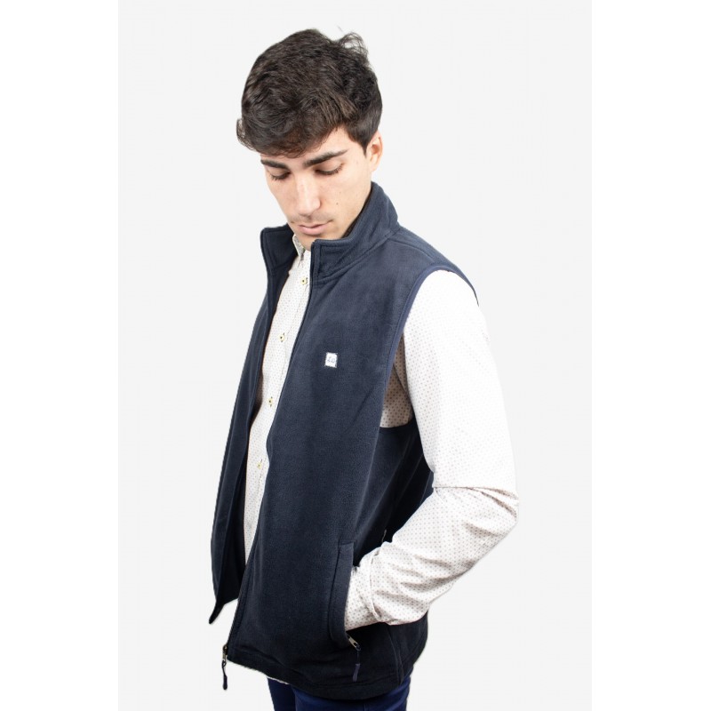 Chaleco cárdigan de cremallera con cuello subido y manga sisa. Bolsillos laterales con cierre de cremallera. Con etiqueta logo Ridebike en el pecho, lateral izquierdo. Tejido polar.
