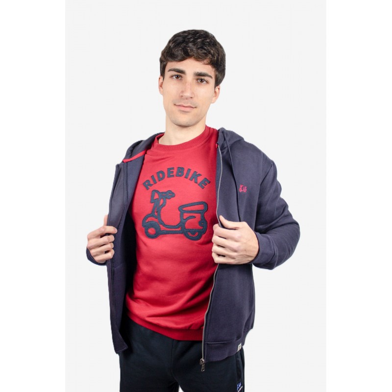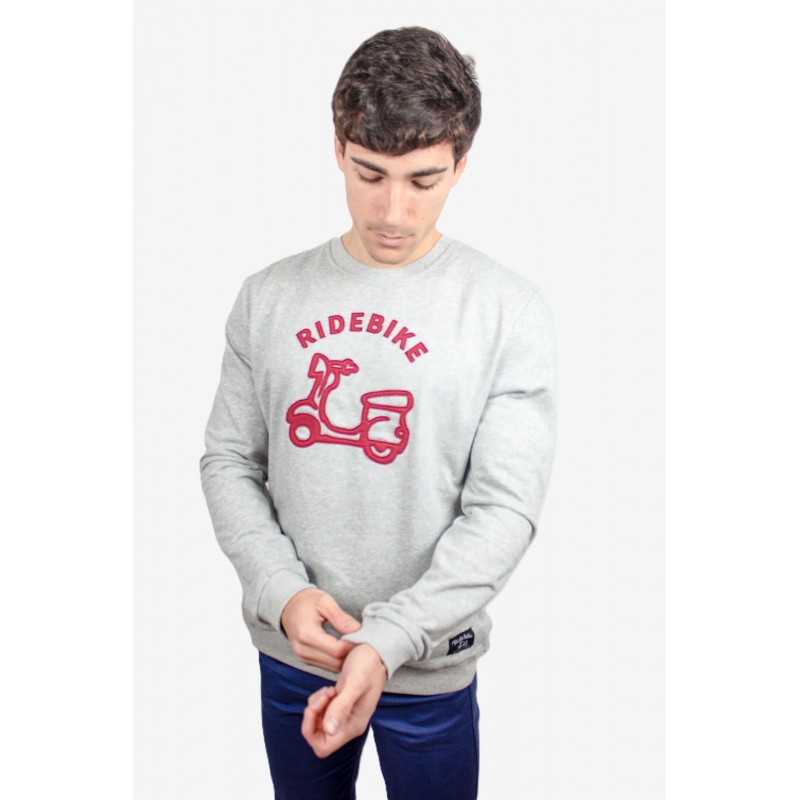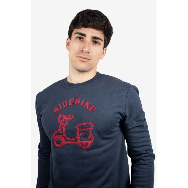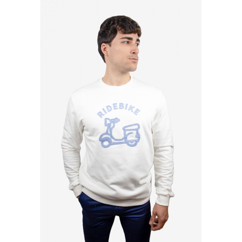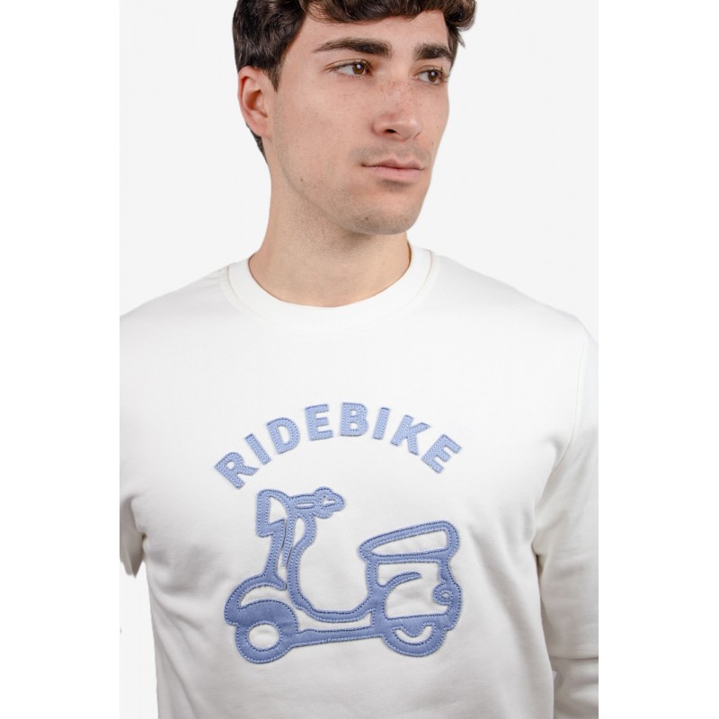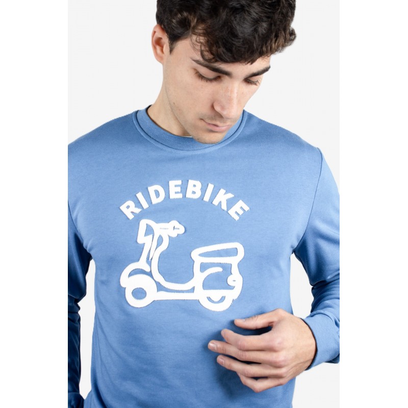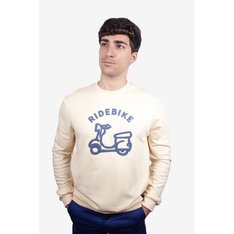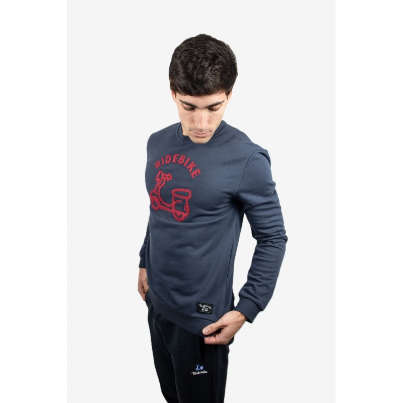 Sudadera de la marca Ridebike con diseño bordado en el pecho y etiqueta decorativa en el bajo. Cuello, puños y cintura en canalé para mejor ajuste. Confeccionada en una mezcla de 85% algodón y 15% poliéster.