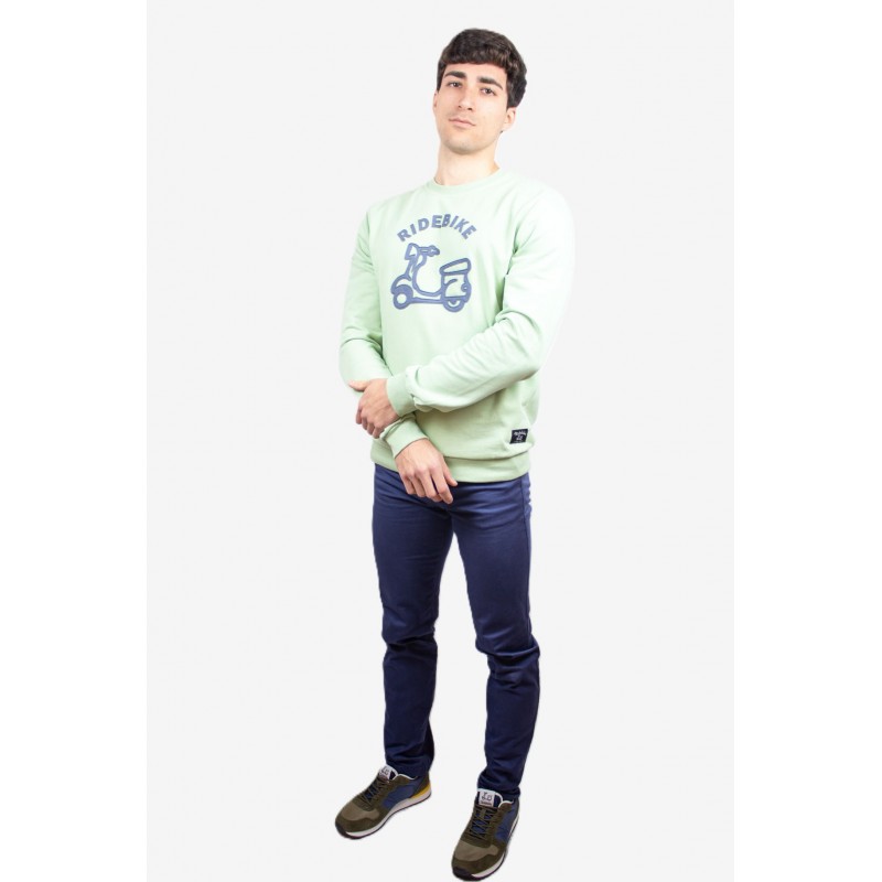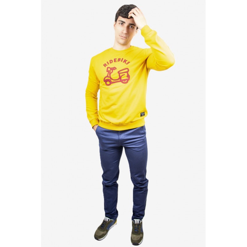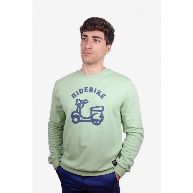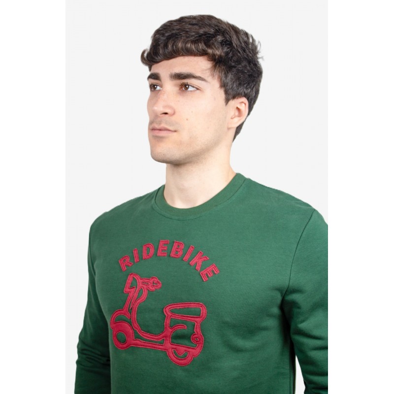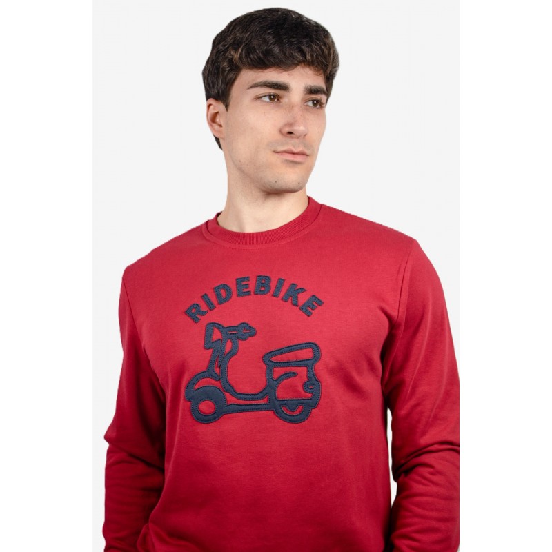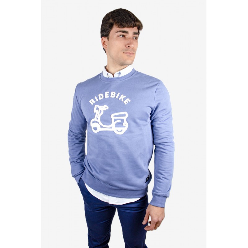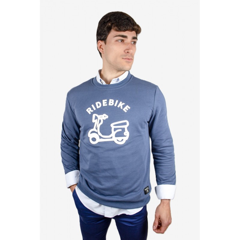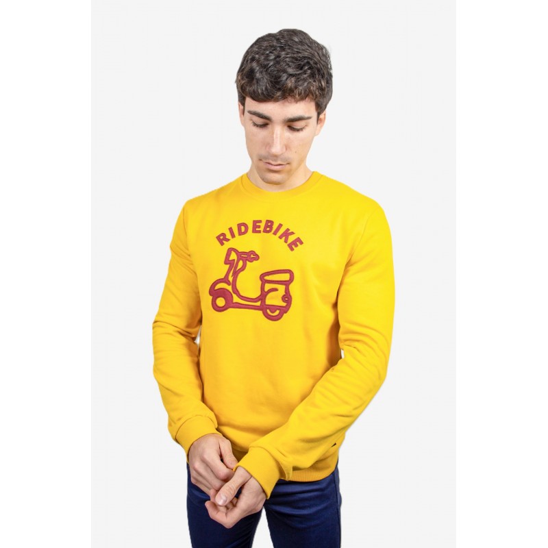 Sudadera de la marca Ridebike con diseño bordado en el pecho y etiqueta decorativa en el bajo. Cuello, puños y cintura en canalé para mejor ajuste. Confeccionada en una mezcla de 85% algodón y 15% poliéster.